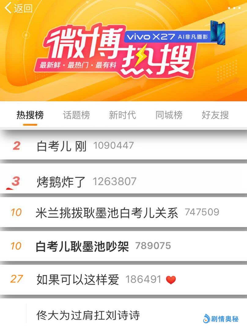 热搜是检验剧集热度的晴雨表,据不完全统计,#如果可以这样爱##白考儿刚##烤鹅炸了##佟大为过肩扛刘诗诗##白考儿耿墨池吵架##米兰挑拨耿墨池白考儿关系#等热搜关键词轮番“轰炸”热搜榜。紧贴剧情的词条,既体现了剧集的实时热度,又让受众在追剧的同时找到更多“志同道合”的网友,就人物性格与剧情展开了广泛讨论。