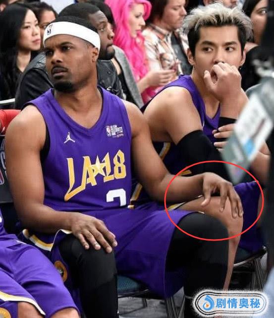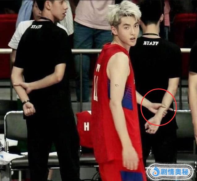 2,乍看,像吴亦凡在拉着一旁球场保安的手臂,难道是吴亦凡请他帮自己什么忙吗?
