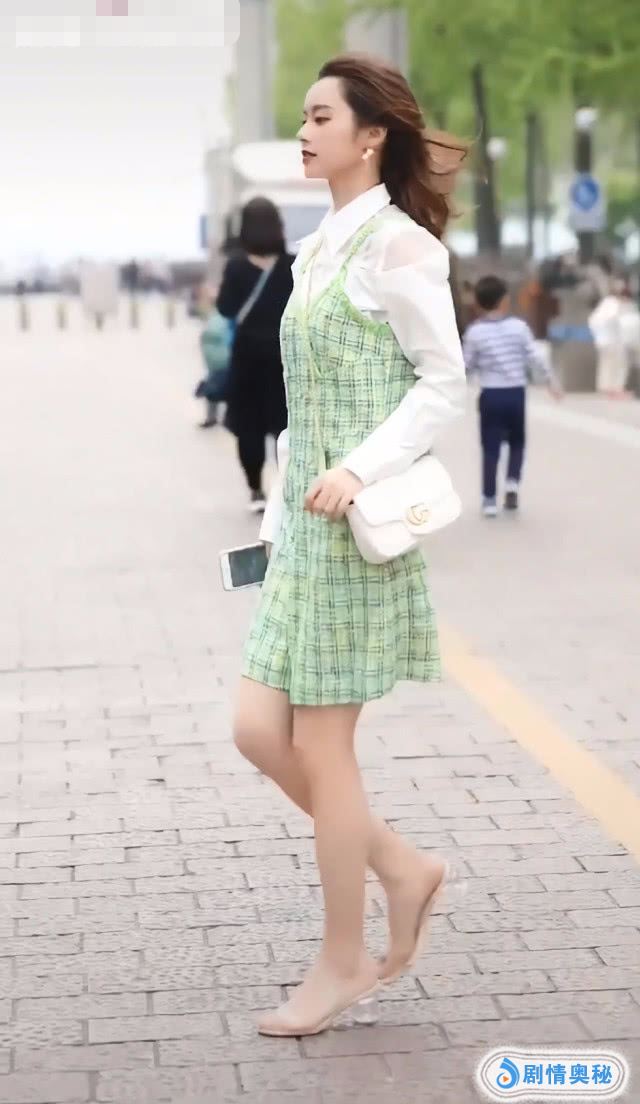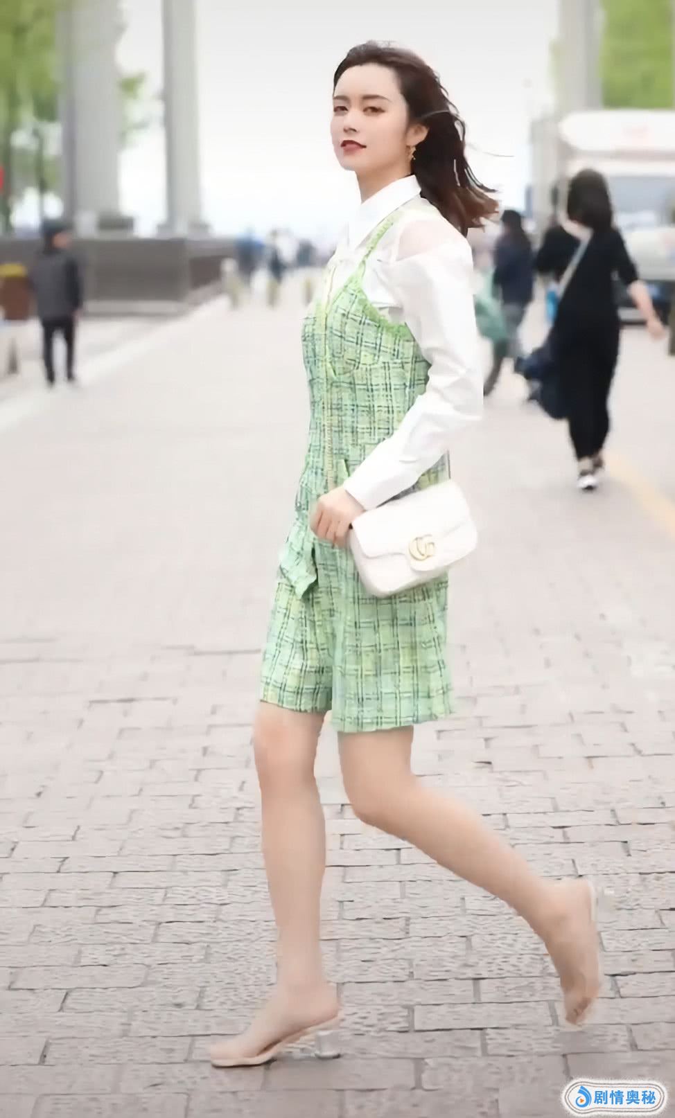 不过这样的鞋子,还是好看的,不知道你喜欢这样的鞋子吗?小姐姐搭配了一件这种绿色格子吊带衫,她的吊带衫是很时髦的,穿起来还很特别,不知道你喜欢这样的打扮吗?