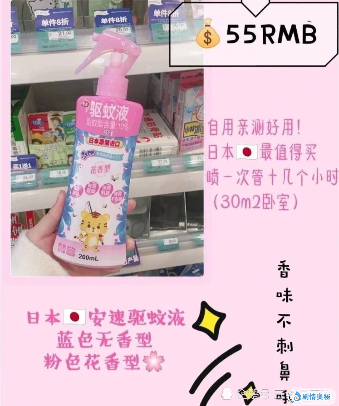 第二款是舒耐的止汗喷雾非常的适合夏天,腋下这些地方湿湿的不清爽真的很难受,但是这款喷雾是水雾妆的还不粘腻,味道也是非常的好闻。第三款是驱蚊喷雾,夏季蚊子真的是超级烦人。这个可以让你夏季子啊宿舍免受蚊虫叮咬。而且可以维持十几个小时足够睡个好觉。