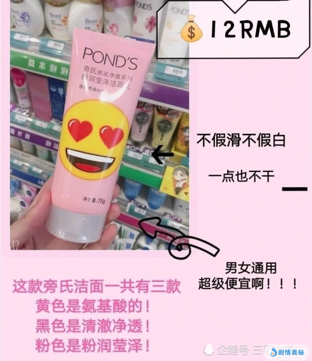 最后就是一款旁氏的洗面奶、这款洗面奶也是平价中的战斗机,黄色款的是氨基酸的。泡沫绵密不假滑洗完之后也不紧绷。其实屈臣氏里面还有很多值得购买的好物,不过小编今天的分享就到此结束了,喜欢的宝宝可以关注小编。