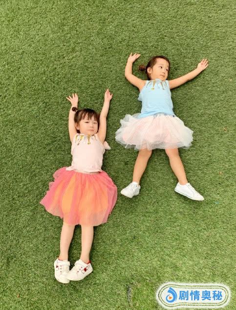 当然,因为贝拉和丫丫并不是真正意义上的双胞胎,所以还是很容易区分的,正如在这张合照中很容易就能区分出姐妹俩,其中身着粉红连衣裙躺在草地上努力摆出一字造型看上去要淑女一些的是贝拉,而身着蓝粉色连衣裙,看上去像是摆了一个“大字型”的则是老小丫丫了。