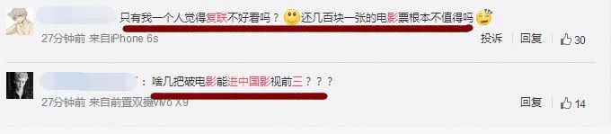 有战狼粉觉得《复联4》真心不好看,整部影片有一半剧情都在尬聊。还有战狼粉这表示“复联的票房明显高太多了”,还有战狼粉表示“从票价可见一般”,还有战狼粉表示“这破电影能进中国影史前三??”。小编觉得其实《复联4》和《战狼2》都有各自的优点,况且《复联4》是漫威电影最终章也是不少漫威粉的情怀能有这么高票房也是理所当然的,不过《复联4》的票价确实比其他影片要贵很多。