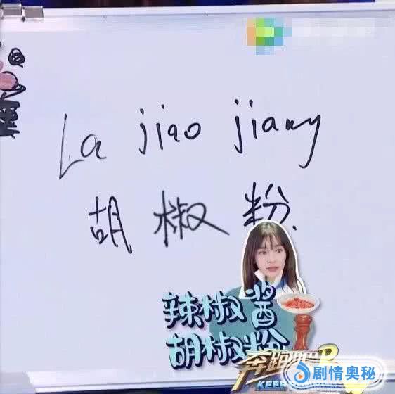 最近,她参加的综艺《奔跑吧》播出了,然而节目一播出,她就又遭到了舆论的非议。原来在最新的一期里,她在做游戏时需要写出“辣椒酱”三个字,但不知道她是不是因为游戏太紧张,提笔忘字了,一时写不出来,只好用拼音代替。