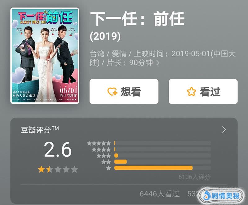 随后,郑恺又推出了电影《下一任:前任》,虽然制片方声称该电影与《前任》系列没有关系,但是从名字上还是蹭足了热度。让人没想到的是,《下一任:前任》的豆瓣得分居然跌到了2.6分,一下子就掉进了烂片阵营,看来郑恺“烂片之王”的帽子不太好摘下来了。