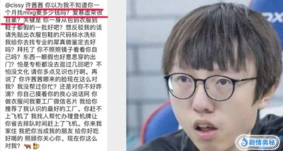 在其中这位“闺蜜”就讲到了一些关于许茜茜的事情,她说许茜茜以前就公然辱骂战队粉丝是“蛆”,而且自己还靠着MLXG的人气以高额贩卖一些廉价的衣服、包、鞋子等,每个月还找锅老师要很多钱,而自己作为闺蜜对许茜茜可以说做到问心无愧,却因为某些事情被许茜茜残忍对待,让自己很憋屈。