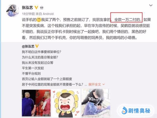 作为郭德纲的徒弟,不少人觉得吴鹤臣应该工资也不低,怎么会没钱治病,之后还把郭德纲和德云社托下水,拿这次的事情和张云雷比较,同样是徒弟受伤,郭德纲的表现却大不一样。之后吴鹤臣的妻子在网上吐槽网友为什么会质疑她骗捐,但是这篇微博的手机型号显示的却是华为P30 PRO,这款手机6000多元,上市时间比吴鹤臣入院要晚三天,这下网友又炸了。