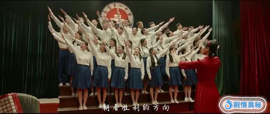 接着是《我们走在大路上》,这是苗老师他们班参加学校歌唱比赛时的曲目。这首歌是李劫夫在1963年填词、谱曲的红色歌曲,当时三年自然灾害刚刚结束,这首歌的传唱鼓舞了人心。在片中,指挥关婷婷同学涂了红指甲油,导致班级只获得了全校第二,令苗老师大感失望。