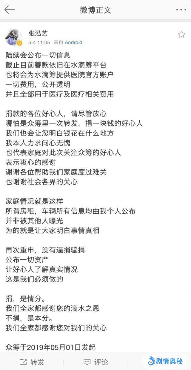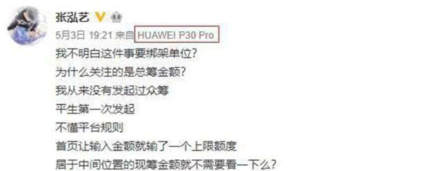 至于为什么是众筹一百万,吴鹤臣妻子给出的解释是,自己第一次使用软件,看到有一个上限,就直接输入了这个数额,并没有别的意思。事情到了这里,一切看起来都是正常的,但是细心的网友还是发现了一些细节,那就是吴鹤臣妻子发微博使用的手机,是华为最新款的手机,价格在6000元左右。