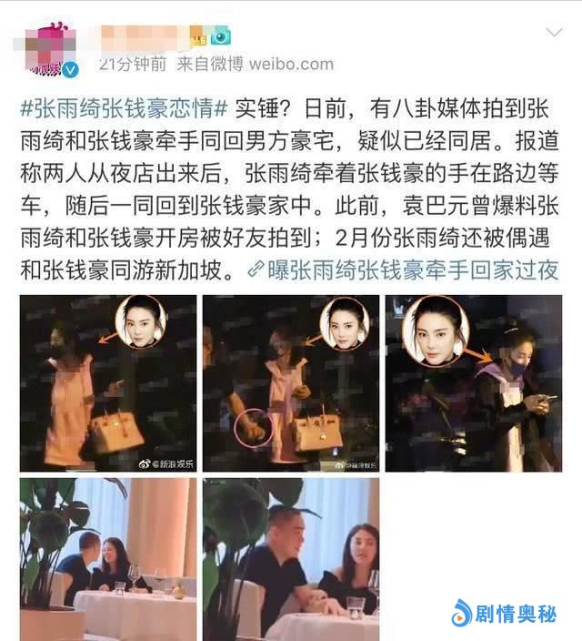 张雨绮在综艺《我和我的经纪人》表现也是比较的亮眼,但是她被杨天真警告过不要太过于张扬自己,需要收敛一些,但没想到反而是被爆料出了私生活。照片当中,两个人还一起来到张钱豪所在的豪宅,这让许多网友都怀疑他们两个现在都已经同居了。