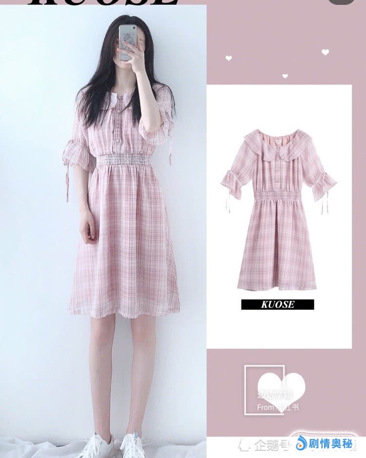 荷叶边衣领连衣裙。实物图更是无敌好看,非常的粉嫩,整体比较清爽飘逸,特别是荷叶边衣领的设计,很遮肉又显瘦,上身更是非常的甜美。