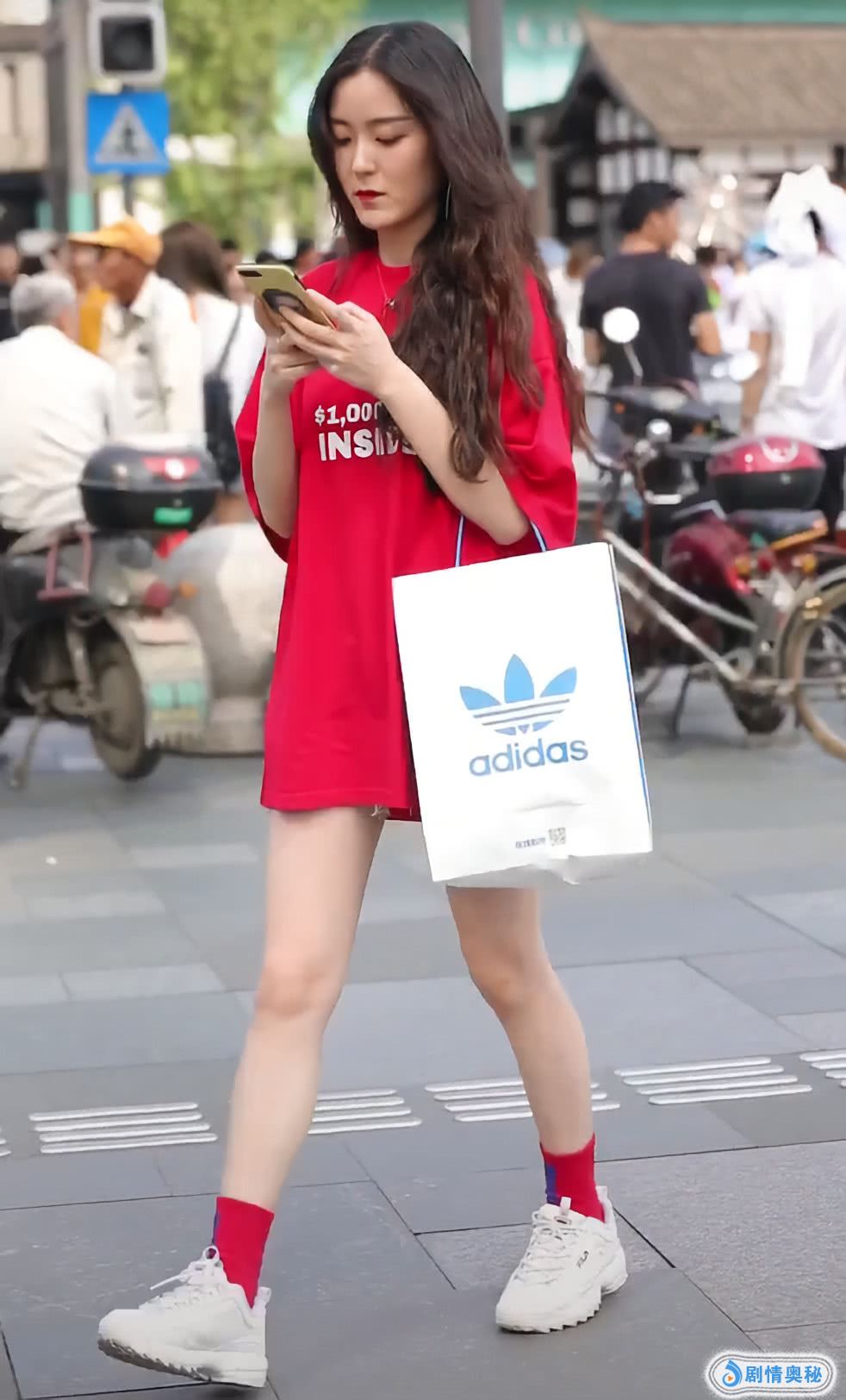 除了袜子和T恤,剩下的全是腿,这样穿衣服也太好看了,小姐姐的身材还这么好,简直就是肤白貌美大长腿,女孩子都羡慕,男孩子都喜欢的类型,长得还比较美艳,这气质绝了!