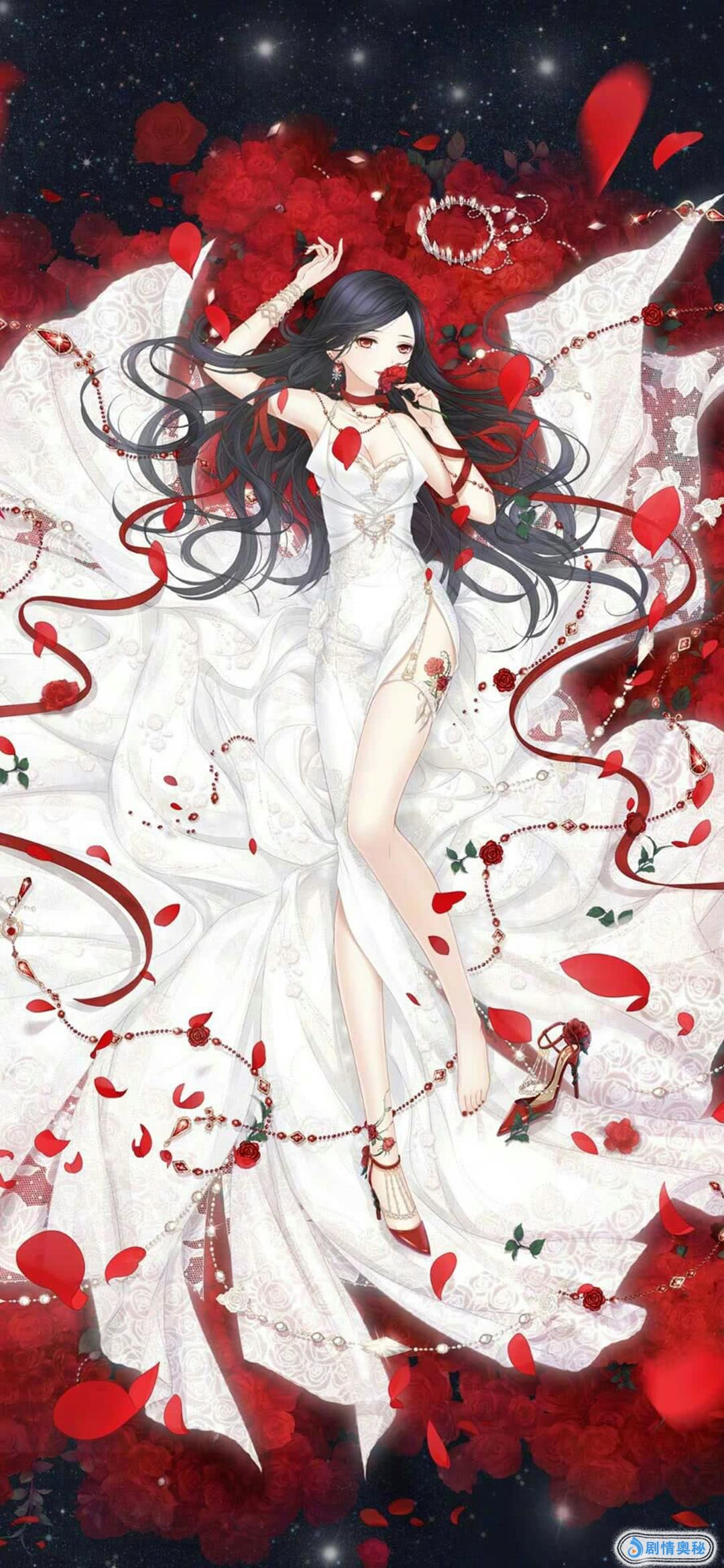 女孩躺在红色的玫瑰花海处,风轻轻地吹过,卷起无数的花瓣,身穿白色礼服等待着爱的人归来,始终相信着他会回来。