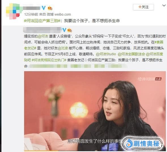 在采访时,何洁表示自己也很无奈,有时候网友的评论特让她感到压力很大。也许就像她说的那样吧,在特殊的情况下遇到合适自己的人,如果换成你,你要不要?对于和刁磊的恋情,何洁解释为一场意外,而对于三胎的出生,何洁好像也觉得是一场意外。何洁表示,因为“不想去扼杀生命”,所以决定生下三胎。也就是说这个孩子也是计划之外的,但毕竟是个小生命啊。