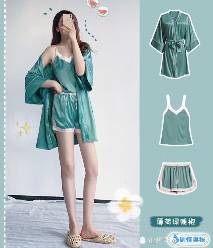 翡翠绿四件套。这套更加的简单大方,四件套的多种穿法完全可以满足我们日常所有的穿搭需求,颜色非常的提亮肤色,很显白,非常的舒适。