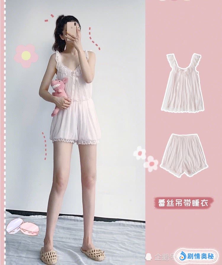 小可爱飞飞袖家居服。这个虽然带着点蕾丝的花边设计,但也是最最舒服的蕾丝,上身不会有任何一点的感觉,简直就是豌豆公主最爱款,白色非常的仙女了。