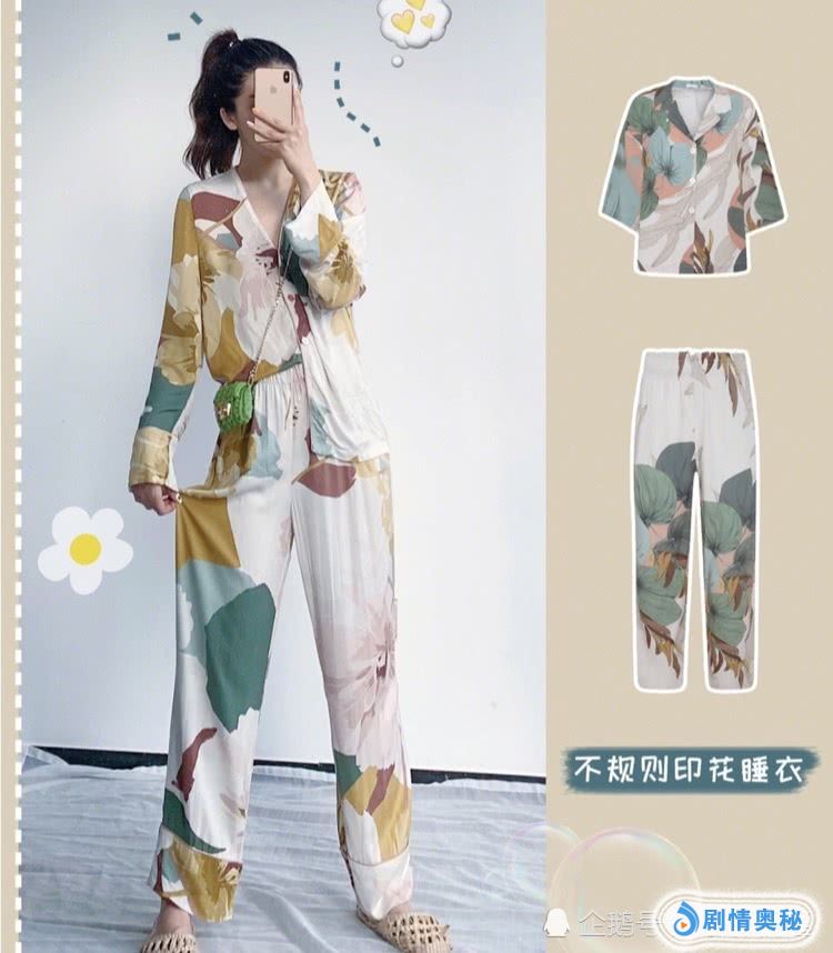 花卉图案棉质两件套。棉质的可以说是最舒服的,睡觉真的是毫无压力,面料是很软糯的棉,夏天穿出去也是非常的透气,印花也是很时尚,出街绝对吸睛。