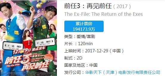 田羽生捯饬的「前任系列」,拿下近20亿票房。