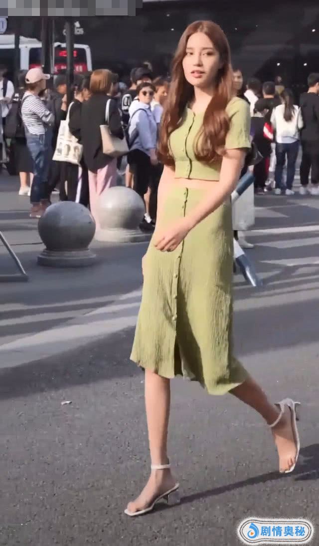 这样的打扮,意外穿出纸片腰,不过本身她的身材就是很瘦的,她穿的衣服还比较简单,这裙子是露小腿的设计,更气质了,搭配了一双比较简单的白色鞋子,很有女人味的打扮!