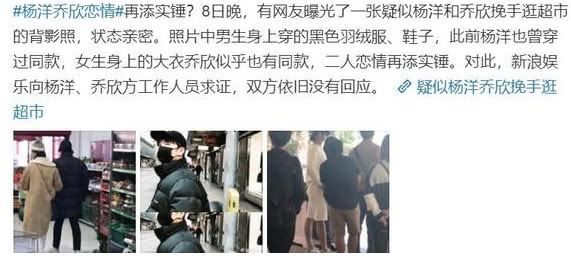 把乔欣带火的是四大顶流之一的杨洋,两人之前因为小号相互关注点赞被网友发现,所以传出绯闻,5月8号晚上网友曝出了一张疑似杨洋和乔欣挽手逛超市的照片,不过两个人之间的关系到底是怎么样的还真的是耐人寻味,双方也都没有承认。