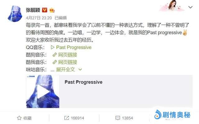 4月27日,张靓颖携全新英文专辑《过去进行时》归来,5月6日全线发售。前后不过十天时间,但这却是张靓颖出道近20年来所交上的最满意一份答卷,而这一切都是在她离开冯珂后独立完成。