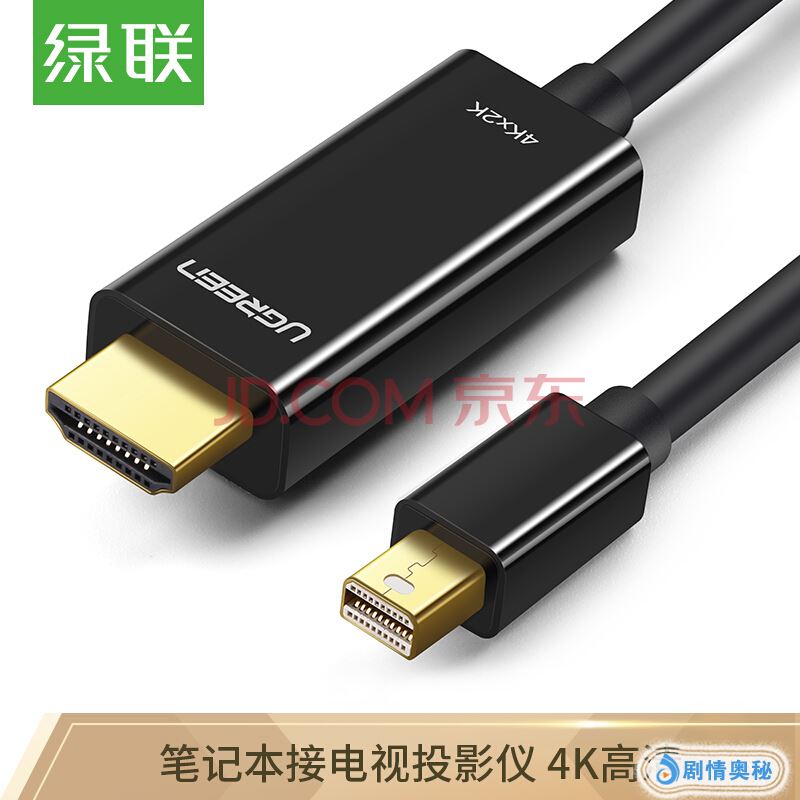 绿联(UGREEN)Mini DP转HDMI转换线 支持Surface苹果MacBook雷电接口电脑笔记本 4K高清扩展坞 1.5米黑20848