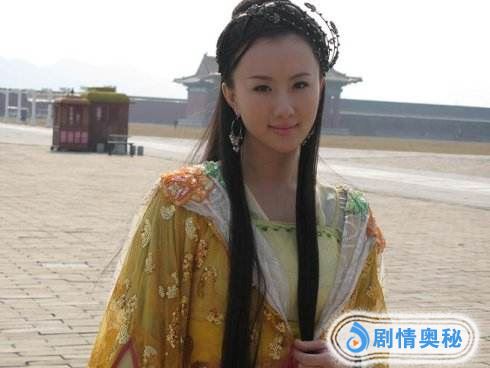 高圆圆饰演了杨广的女儿若惜公主,她的抹胸裙子与安宁公主的一样,但是外边那件黄裙子的白色衣领肩膀部分少了黄绿色辅料。