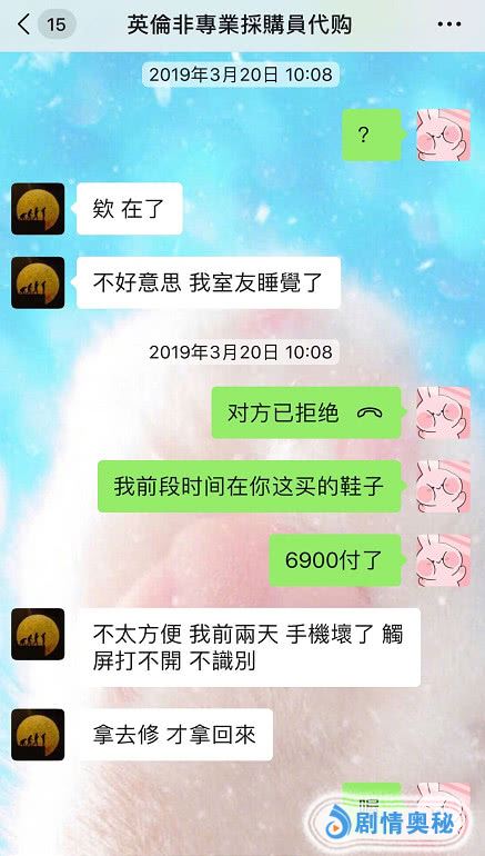 只是随着时间的流逝,张馨予开始了第一次的催货,并且被对方以室友睡觉的借口给开脱过去了,而那个时候张馨予和这位代购还算是友好交谈,只是随着时间慢慢的流逝,张馨予再一次催货开始,却发现这对方并没有回应,只是这一次被对方以手机坏的理由再一次开脱,一切看着好像没有什么问题,这个时候的张馨予完全没有反应过来说是自己可能被骗。