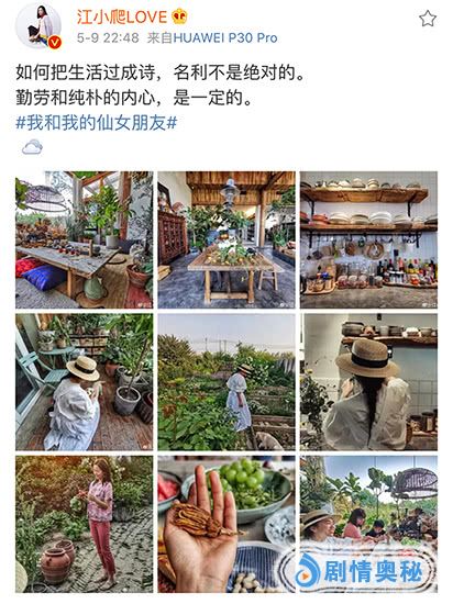 近日,江一燕在微博分享和闺蜜们的生活日常,并写道“如何把生活过成诗,名利不是绝对的。勤劳和纯朴的内心,是一定的。”配图是满满9张田园生活的记录,让人看了心生喜欢!