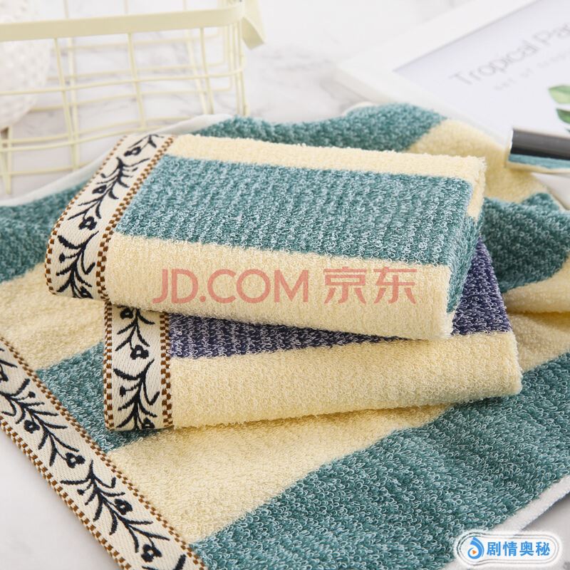 金号毛巾家纺 纯棉彩条方巾 吸水柔软抹手巾 2条装 蓝/绿 35*34cm 45g/条