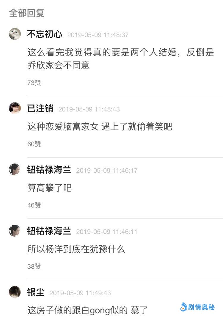 有很多人开始说杨洋要偷着乐了吧?遇到了恋爱脑的富家女,乔欣小号中的那些话也确实证明她是个恋爱脑的女生,整体会给人一种谈恋爱就容易陷进去的感觉。其实,两个人如果真的在一起了,明确的承认也比这样天天上热搜的情况要好,但是,目前双方的犹豫和不回应,大部分都还是因为在考虑到会不会影响到男方的事业吧。