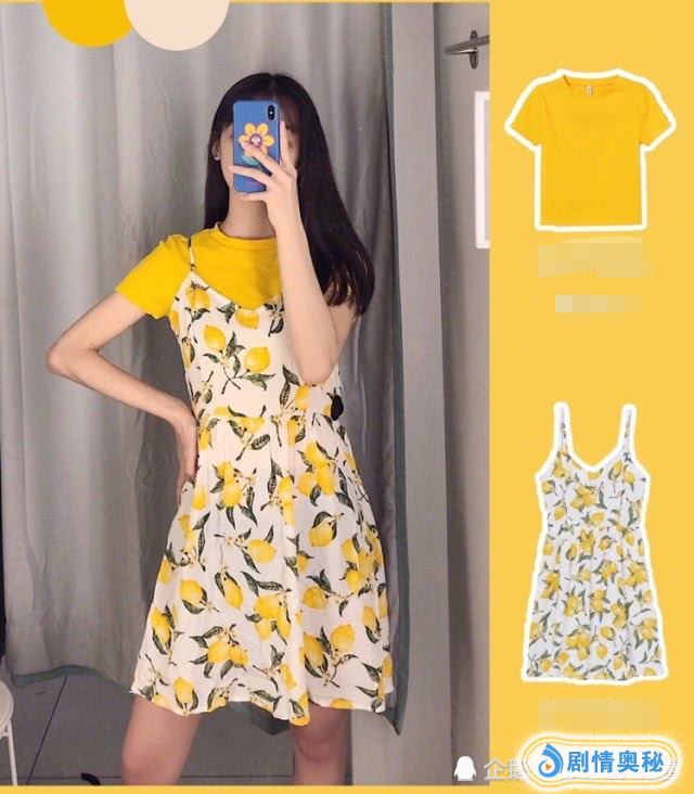 短袖+吊带短裙。这一套搭配非常的甜美,很有少女感,芒果色在夏天非常的亮眼,很显白的颜色,这件裙子不是很紧身但也很显身形,非常适合梨形身材,长度也刚好遮住大腿的肉肉,非常的显瘦。