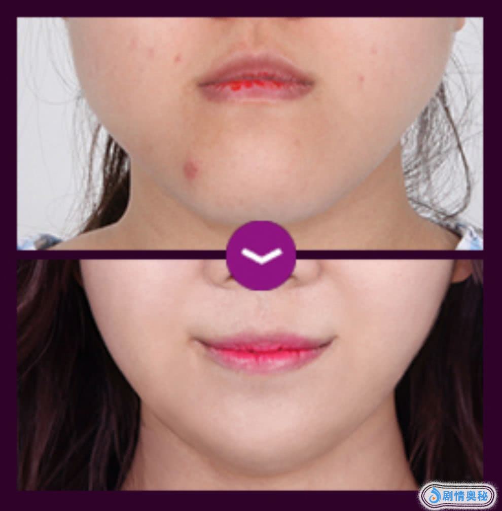 原本正希是有一点偏颌的,做完V-line手术之后,正希的脸不仅小了一圈,偏颌问题也解决了。(看这个对比图,羊觉得正希还像是做了微笑唇的样子~)