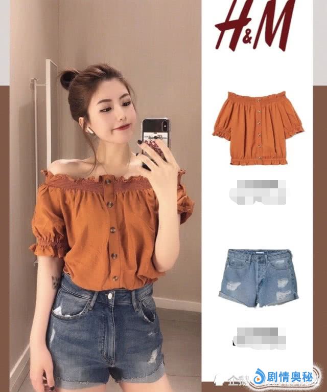 脏橘色露肩短T+牛仔短裤。很美的一件小衫可露肩也可不露,颜色是今年大火的脏橘色,这颜色上身洋气而且很显肤色,搭配简单的一条牛仔短裤完全OK。更是明星佟丽娅同款。