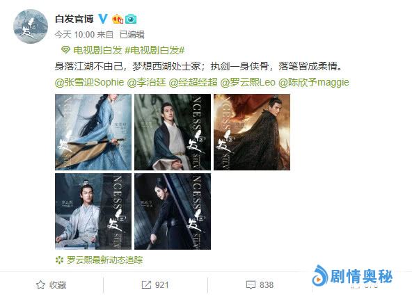 首先看到的是《白发》男女主角李治廷和张雪迎,剧中容乐(张雪迎饰)奉命嫁给王子无忧,却被后者拒婚,随着剧情的深入,容乐与傅筹假结婚,随后被无忧发现化名为漫夭的美女子正是容乐。再往后化名漫夭的容乐决定掌控自己的命运,她与无忧、傅筹携手定乱世,之所以能功成名就,离不开一个人的舍身相助,没错,他就是悲情角色容齐殿下(罗云熙饰)。