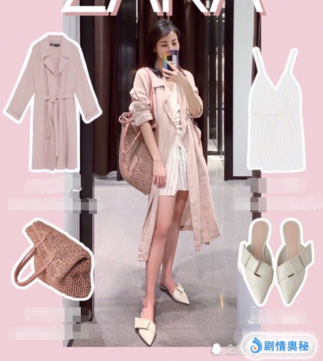 外套+吊带。夏天最防晒又很适合通勤的穿搭,风衣是亚麻质感的橡皮粉,超级显气色,oversiza的版型,穿上就是纸片人,这一整套的搭配更是拉长了整体的比例,显的腿又细又长。