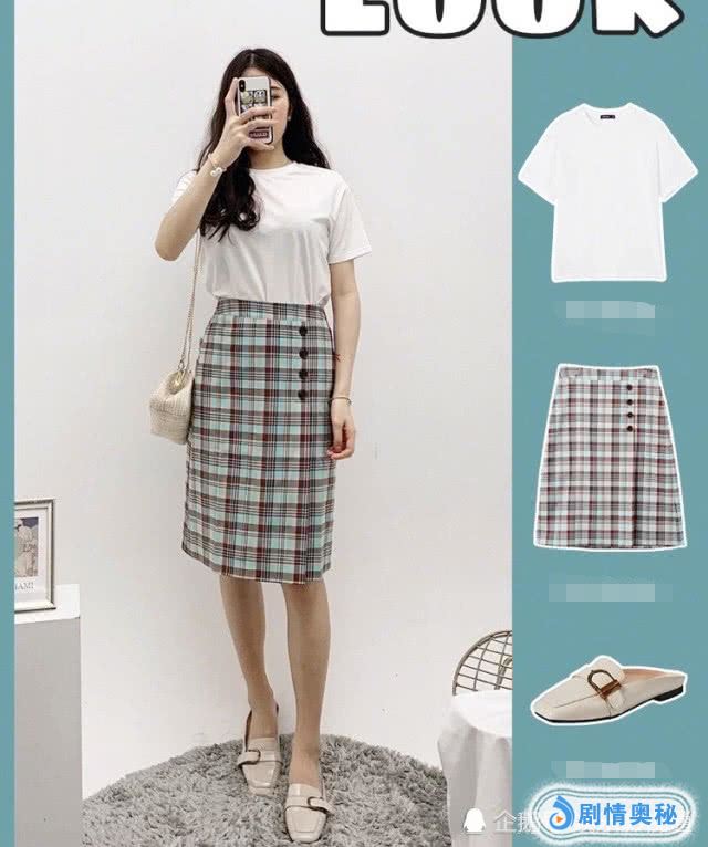 T恤+格子裙,白色的T恤永远是最百搭的单品,每个人都必备最少一件白T。格纹的元素不止是属于秋冬,在夏天换一个色系的组合呈现出不一样的清新风,非常的nice。