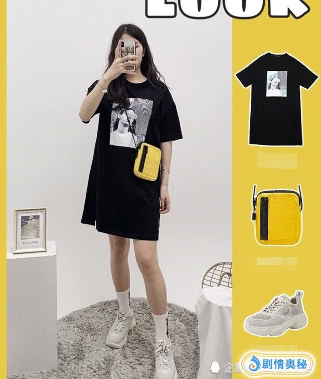 T恤裙绝对是懒人的心头爱,oversiza风是很多女孩都喜欢的版型,穿脱非常的方便,完全不用考虑怎样搭配,这件裙子更是善于利用撞色的单品,营造出自身的时髦感。