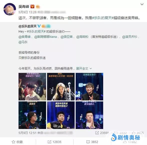 值得一提的是,《乐队的夏天》除了吴青峰外,还有高晓松、欧阳娜娜、乔杉、张亚东以及马东加盟,而他们的身份也跟吴青峰一样,不是导师也不是选手,而是一枚超级乐迷,跟着观众一起看表演。这档综艺将在5月开播,期待超级乐迷吴青峰,当然也期待能从这节目认识了解更多好乐队!