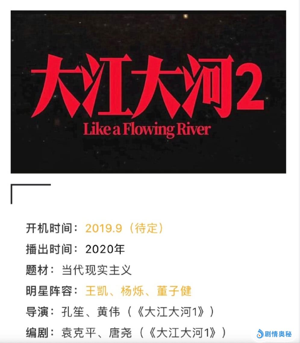 曾经大爆的电视剧《大江大河》终于要拍摄第二季了。虽说之前有传言第一部第二部已经拍好了,但目前似乎已证明这些是谣言。而真相是《大江大河2》将于9月开拍,计划2020年播出。