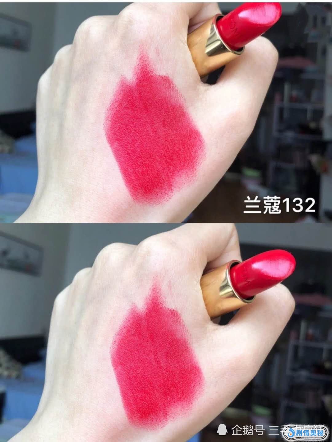 第三款是LBR32,这是一支超级春天的颜色,不管是包装还是颜色都是少女心爆浆。质地非常的顺滑,上嘴就是粉粉嫩嫩的奶茶色,超级温柔。最后一款是兰蔻132.正红偏一点橘调,质地水润不拔干,薄涂有点像樱桃水红色,上嘴就是一颗饱满的大樱桃。