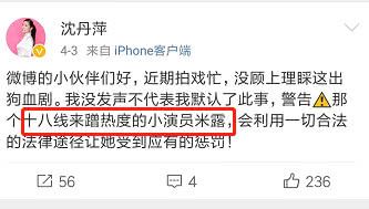 一经曝出,护女心切的沈丹萍先不管事实真相如何,立马在微博上进行反击,言语十分傲慢,称米璐是18线小演员,故意蹭其知名度借机出名而已,另外还恶人先告状的表示会走法律途径,让爆料人米璐得到应有的惩罚!