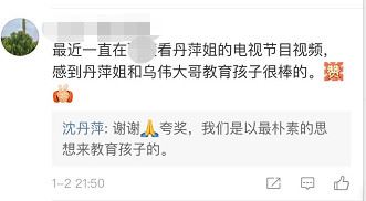 最让人讽刺的是沈丹萍在网络上还开了相关家教的视频节目,网友对此评论称“每天都看丹萍姐的电视节目视频,感到丹萍姐和乌伟大哥教育孩子很棒的。”沈丹萍紧跟着回复到:“我们是以最朴素的思想来教育孩子的”。