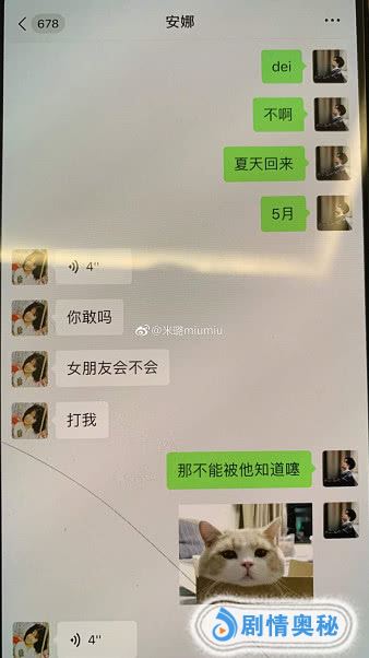 微博名为“米璐miumiu”在社交媒体上称,偶然在男友的聊天记录中,发现有个名为“安娜”的第三者,并把安娜和其男友的聊天记录晒到了网上,通过聊天内容看。安娜其实是知道自己的聊天对象是有正牌女友的,但还是不死心希望和对方能有个happy ending!