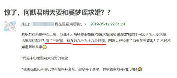 而就在5月12日当天,有知情人透露,何猷君将在5月13日当天向奚梦瑶求婚,求婚的地点,就选在妈妈四太名下的物业——尚嘉中心。这可以说是赌王家的又一桩喜事了!