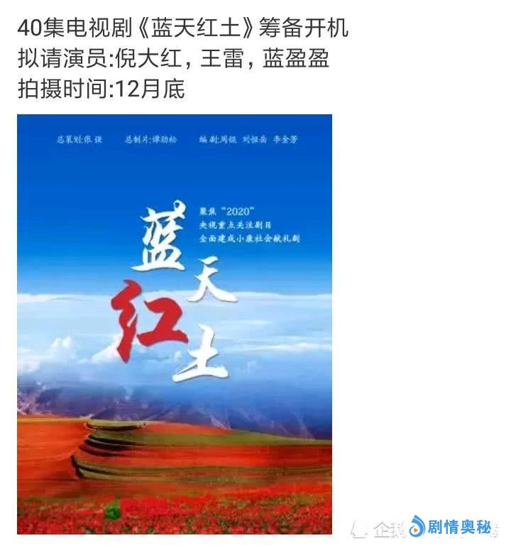 而据悉,最近有一部新剧正在筹备当中,剧名叫做《蓝天红土》。这部剧是聚焦2020央视重点关注的剧目,也是全面建成小康社会的献礼剧,暂定在12月底开机,拍摄40集的剧情。这部剧当中的男主,邀请倪大红老师加盟出演。