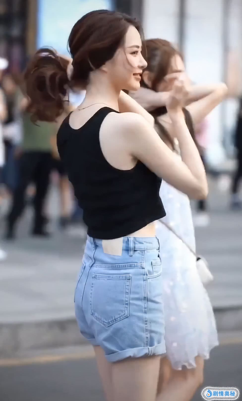 像这位小姐姐,身材就是巨好,她穿的衣服同样也美,上半身选择了一件黑色背心,她的背心简单又时髦,穿起来还不错,搭配起来是真的好看,而且还比较显气质,不知道你喜欢这套衣服吗?