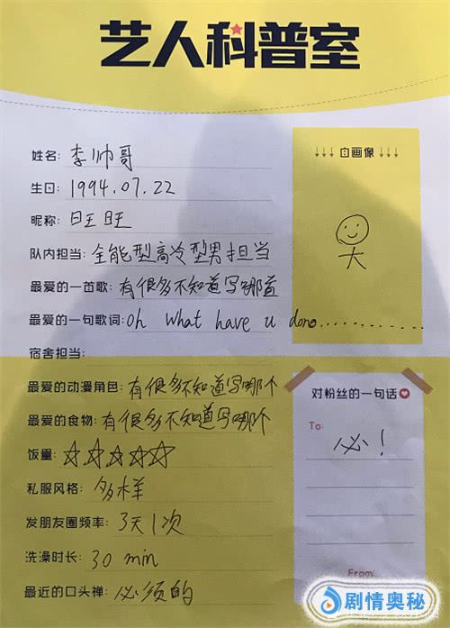 看看他给自己起的新名字“李帅哥”,以及超幼稚的自画像就明显感觉跟“高冷”不沾边了,差点被李汶翰的型男外表欺骗了,希望李汶翰不要把UNINE带跑偏了才好,“盒妹”看了可千万不要笑出声。