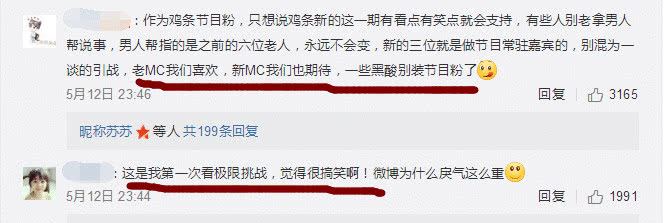 不少网友吐槽“《极限挑战5》第一期与跑男内容相似,干脆改名为《奔跑吧,极限》”,还有网友则冲着迪丽热巴给了一星差评,网友表示“岳云鹏和雷佳音综艺感还行,有笑点,但是迪丽热巴纯属打酱油毫无综艺感。”,还有网友表示“迪丽热巴真的不能做常驻嘉宾,看个视频弹幕还控评,全场无亮点”。不少网友都表示“《极限挑战5》没了黄渤、孙红雷和严敏,感觉都变味了”。