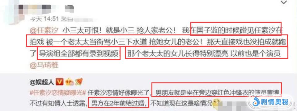 除了这位马琦雅的闺蜜,还有网友爆料,称任素汐有一次在国子监拍戏时,被一位老太太当街怒指,说任素汐抢了她女儿老公,当时任素汐没有做任何解释,也没有还嘴,直接跑掉,整个导演组都亲眼目睹了事件的发生。按照这位网友的描述,那位老太太应该是马琦雅的母亲无疑了!